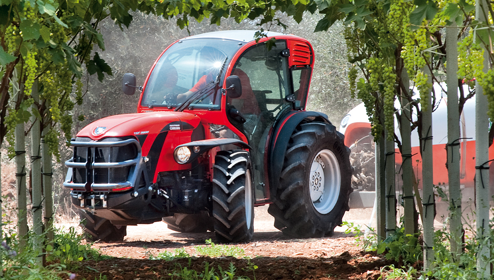 TGF 8900 Tractor of 75 Hp (in Option 98 Hp) for Vineyard and Orchard application with 1.74M Class 4 cabin. a strong and performance unit.