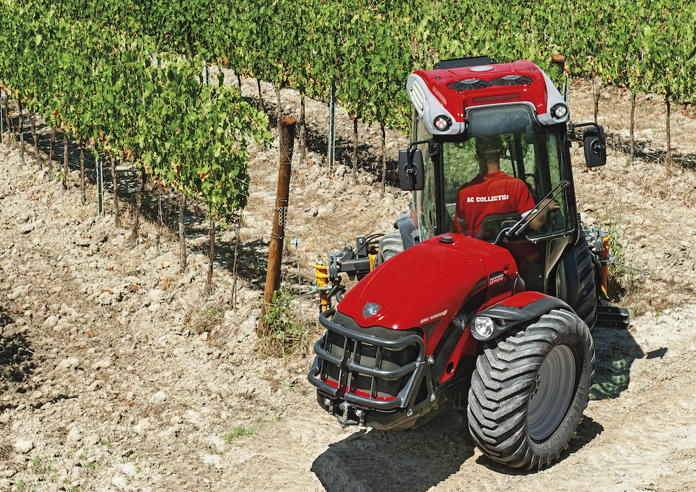 TGF 8900 Tractor of 75 Hp (in Option 98 Hp) for Vineyard and Orchard application with 1.74M Class 4 cabin. a strong and performance unit.